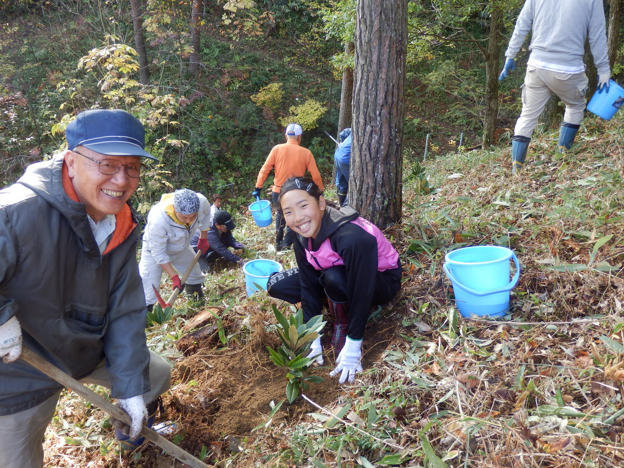 シャクナゲ植樹 活動の様子 他 2015.11.06 「エキ」にはシャクナゲもたくさん植えてあり名物のひとつです。その苗木を植樹しました。 旧鹿野町の町花シャクナゲを天神山に植えていましたが、周南コンベンション協会のご厚意で今回から山野草のエキに30本を植樹しました。植樹には協会会員や緑の少年隊など30人が参加し、鹿野地区内で育てられた苗木を植え付けました。(by たぬき)